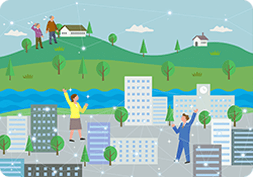そして、「地方に都市の利便性を、都市に地方の豊かさを」を実現して、全国どこでも誰もが便利で快適に暮らせる社会を目指します。